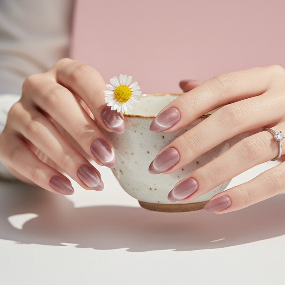 Blisss Nails Handmade Premium Press On Nails - Dusty Pink Rose Halo Cat Eye Magnetic Effect, Reusable Artificial Nails, Short Almond Stiletto Shape, Luxury Shimmer Finish Salon-Quality False Nails 10 Pcs Nail Set - S